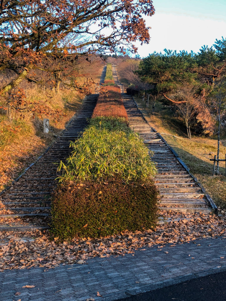 駐車場は霧島アートの森のすぐ近くにあります。霧島アートの森を左手に見た場合、もう少し奥に進んでいったところの右手にあります。日本一の枕木階段のすぐ前なので、わかりやすいです。