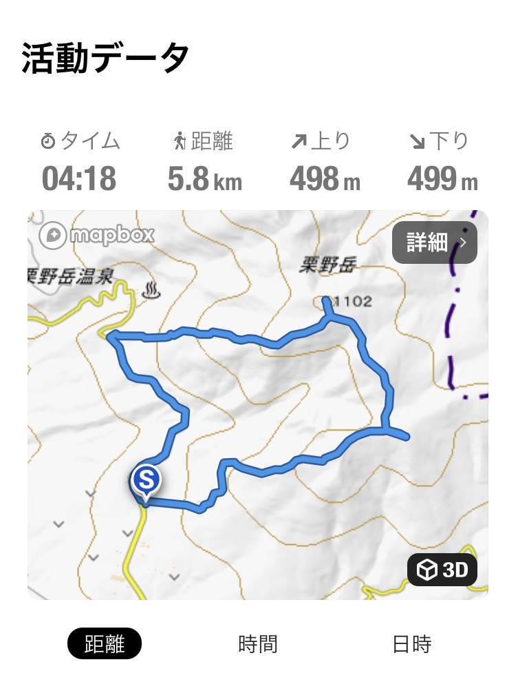 活動の記録:標高差498m(登り)距離5.8㎞ タイム4時間18分 でした。